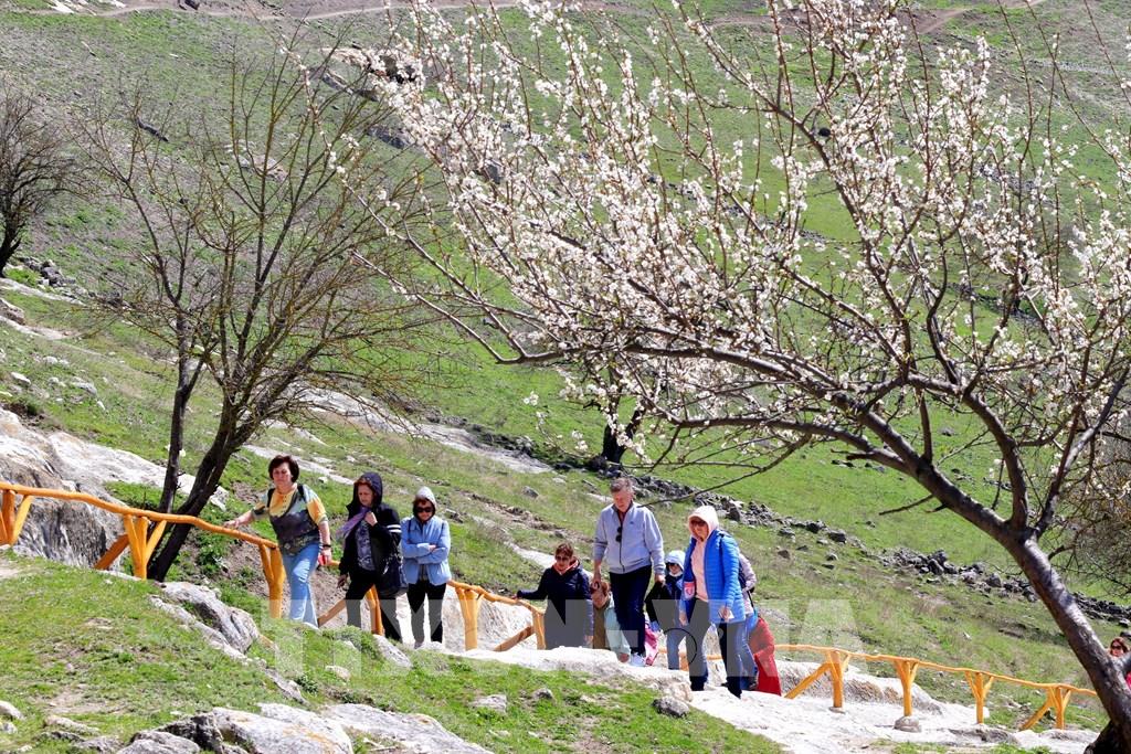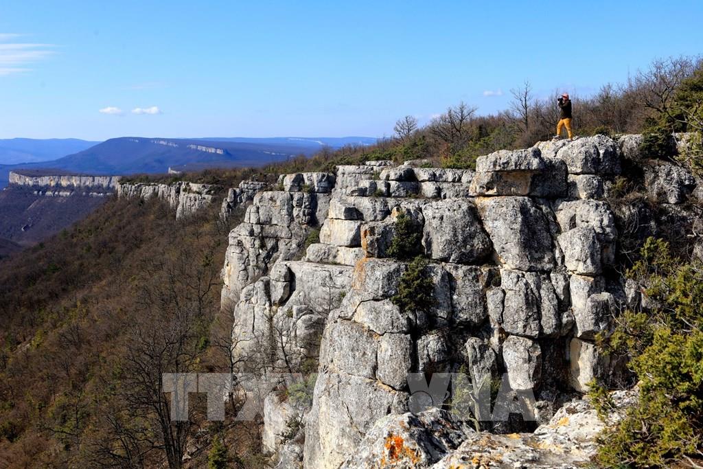 Núi Burunchak được bao quanh bởi những vách đá dựng đứng và hệ thống hang động nhiều tầng lớp bên trong, là điểm du lịch cuốn hút du khách. Ảnh: Duy Trinh - PV TTXVN tại Nga