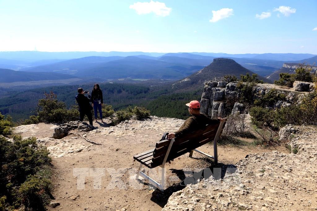 Từ trên núi Burunchak, du khách có thể phóng tầm mắt quan sát một vùng rộng lớn của bán đảo Crimea. Ảnh: Duy Trinh - PV TTXVN tại Nga