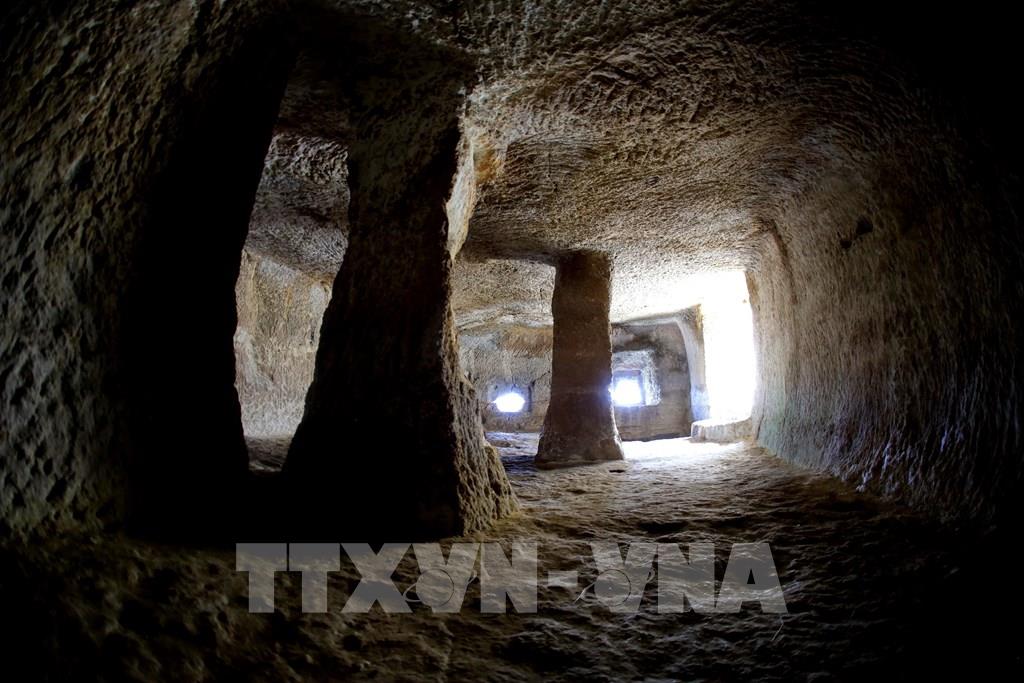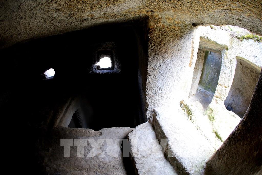 Hệ thống hang động nhiều tầng lớp tạo nên sự bí ẩn của pháo đài Chufut-Kale. Ảnh: Trần Hiếu - PV TTXVN tại Nga