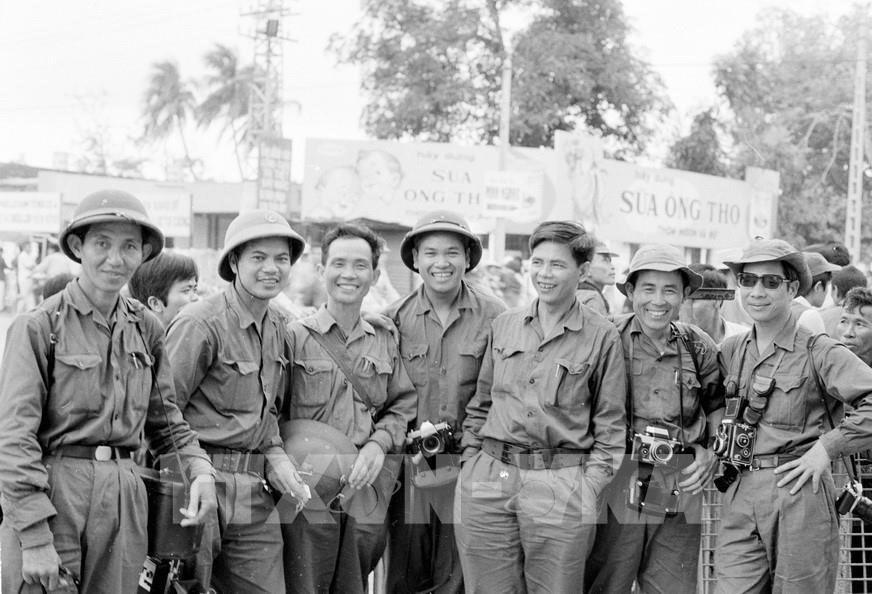 Trong chiến dịch Hồ Chí Minh năm 1975, những nhà báo-chiến sĩ của Việt Nam Thông tấn xã và Thông tấn xã Giải phóng (nay là TTXVN) đã theo sát từng mũi tiến quân, có mặt trong năm cánh quân tiến vào giải phóng Sài Gòn, có mặt ở tất cả các địa phương, để đưa tin, bài và ghi lại kịp thời bằng hình ảnh những khoảnh khắc chân thực, sống động của trận quyết chiến chiến lược cuối cùng trong cuộc Tổng tiến công và nổi dậy mùa Xuân 1975, giải phóng hoàn toàn miền Nam, thống nhất đất nước. Ảnh: TTXVN