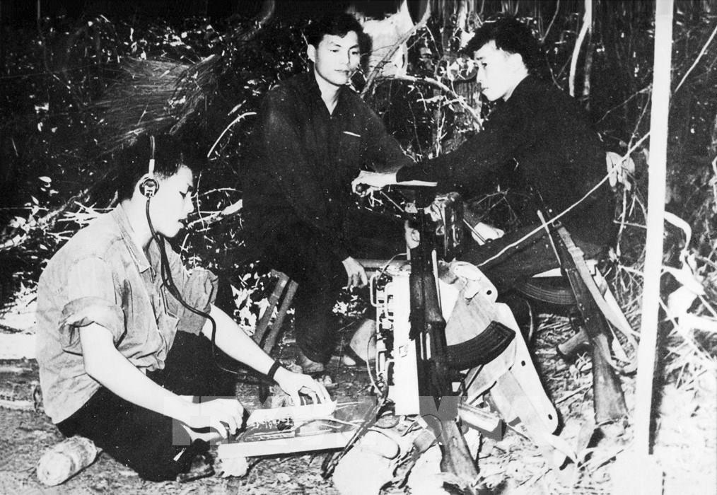 Tổ điện báo Thông tấn xã Giải phóng điện tin từ mặt trận về căn cứ. Ảnh: TTXVN