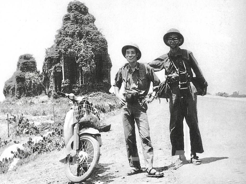 Các phóng viên Lâm Hồng Long và Trần Mai Hưởng trên đường qua miền Trung trong chiến dịch Hồ Chí Minh, mùa Xuân 1975. Ảnh: TTXVN