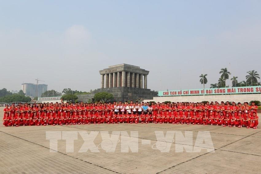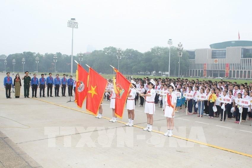 Đoàn Đại biểu Cháu ngoan Bác Hồ báo công dâng Bác và vào Lăng viếng Chủ tịch Hồ Chí Minh. Ảnh: TTXVN