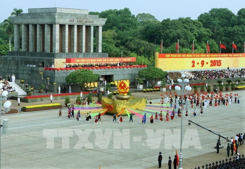 Sáng 2/9/2015, Lễ mít tinh, diễu binh, diễu hành cấp Quốc gia kỷ niệm 70 năm Ngày Cách mạng Tháng Tám (19/8/1945-19/8/2015) và Quốc khánh (2/9/1945-2/9/2015) được tổ chức trọng thể tại Quảng trường Ba Đình. Ảnh: TTXVN