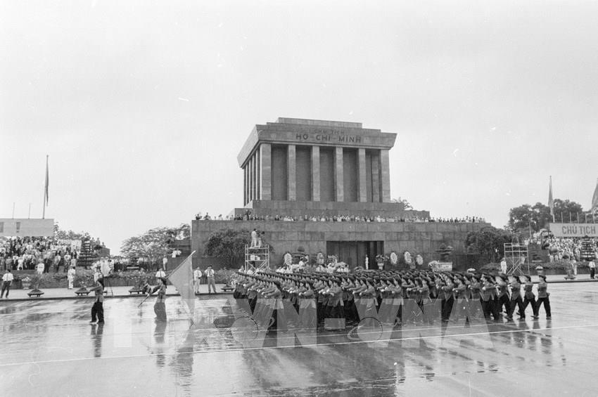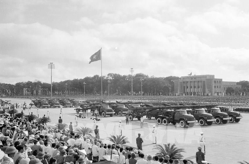 Ngày 2/9/1975, các đại biểu, lực lượng vũ trang nhân dân và hơn 40 vạn nhân dân Thủ đô dự lễ mít tinh, diễu binh và diễu hành chào mừng kỷ niệm 30 năm ngày thành lập nước Việt Nam dân chủ cộng hòa. Ảnh: TTXVN