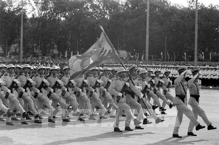 Lễ duyệt binh chào mừng kỷ niệm 10 năm Ngày Quốc khánh (2/9/1955) trên quảng trường Ba Đình (Hà Nội). Ảnh: TTXVN