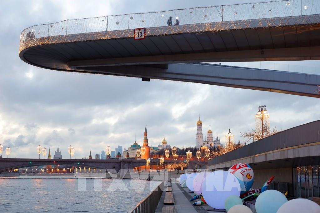 Khu vực công viên Zaryadye trang trí nhiều đèn màu sặc sỡ chào đón Giáng sinh và Năm mới 2021. Ảnh: Trần Hiếu - PV TTXVN tại Nga