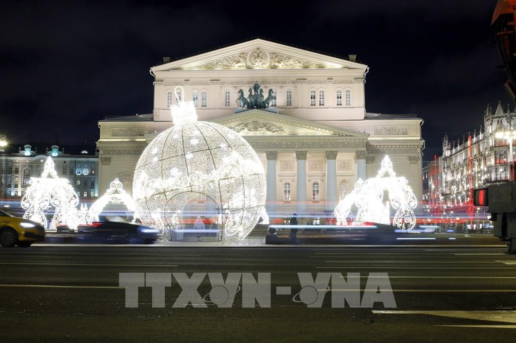 Khu vực quảng trường Nhà hát lớn trang hoàng lộng lẫy đón Giáng sinh và Năm mới 2021. Ảnh: Trần Hiếu - PV TTXVN tại Nga