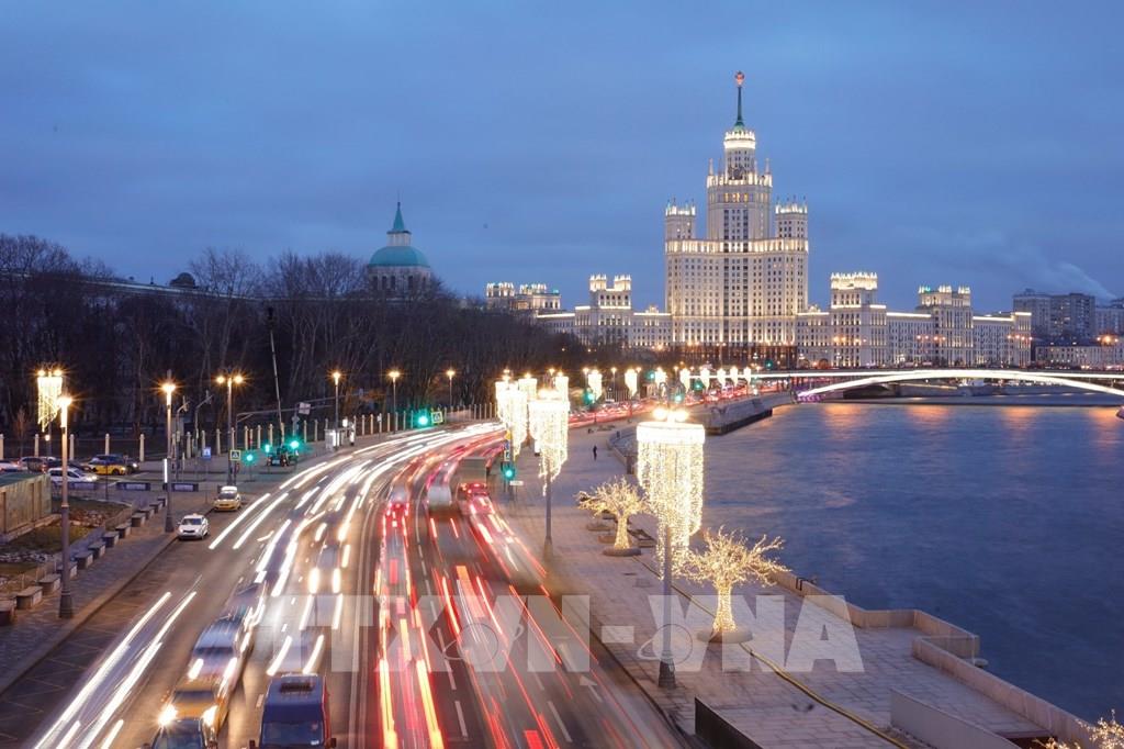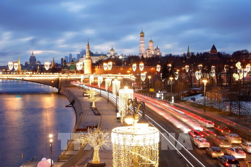 Các tuyến phố chính được trang hoàng với nhiều loại đèn màu đẹp mắt. Ảnh: Trần Hiếu - PV TTXVN tại Nga