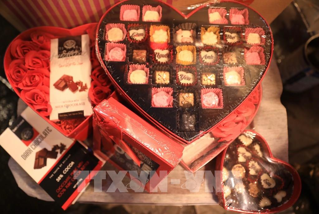 Sô-cô-la(chocolate) cũng là mặt hàng được bày bán nhiều trong dịp lễ tình nhân. Ảnh: Hoàng Hiếu - TTXVN