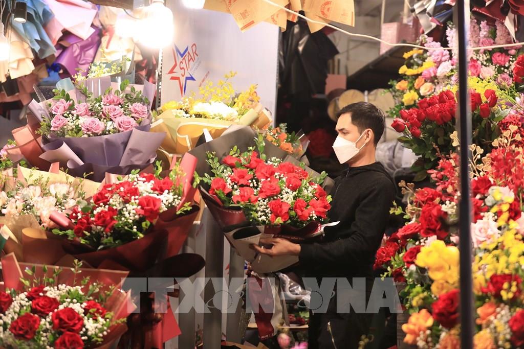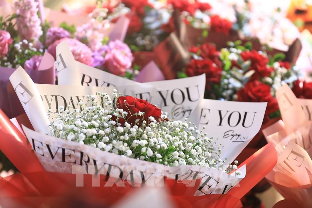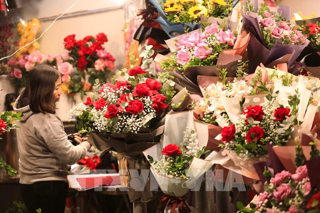 Hoa Hồng được chọn mua nhiều trong dịp Valentine 14/2. Ảnh: Hoàng Hiếu - TTXVN