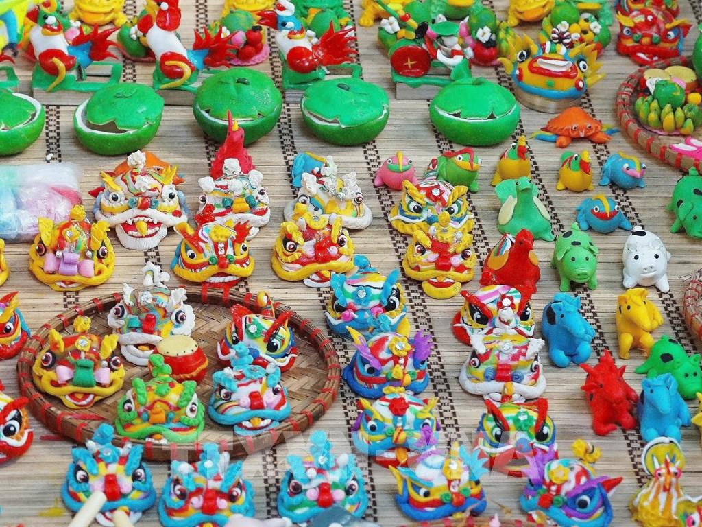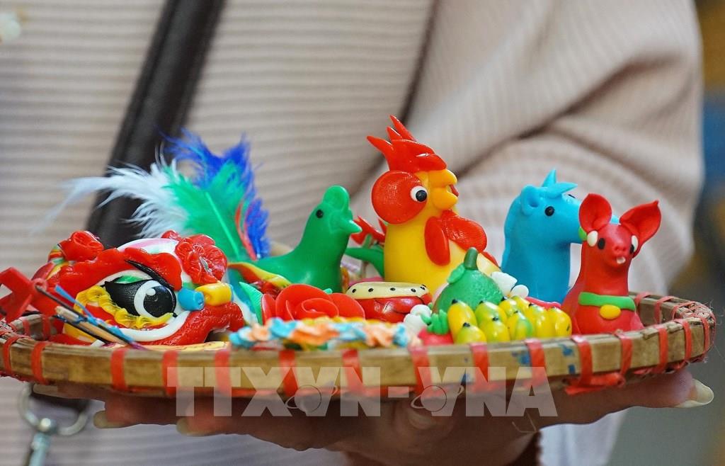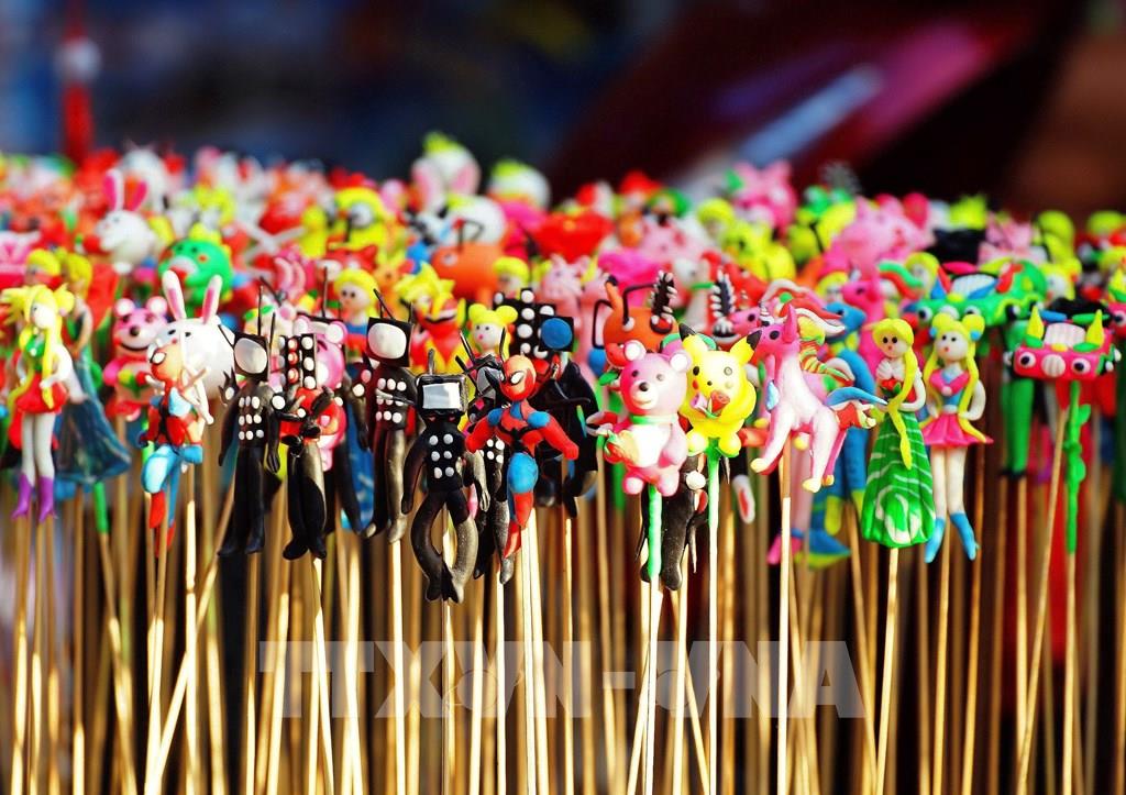 Những món đồ chơi được tạo hình từ gạo nếp bày bán trên phố Hàng Mã . Ảnh: Khánh Hòa - TTXVN