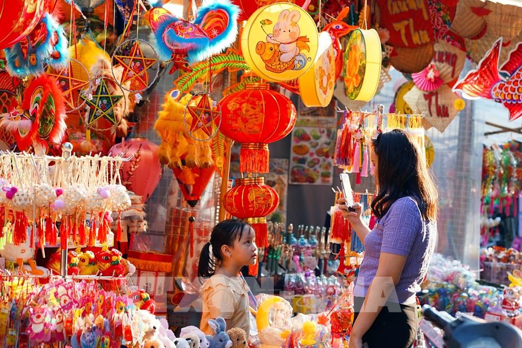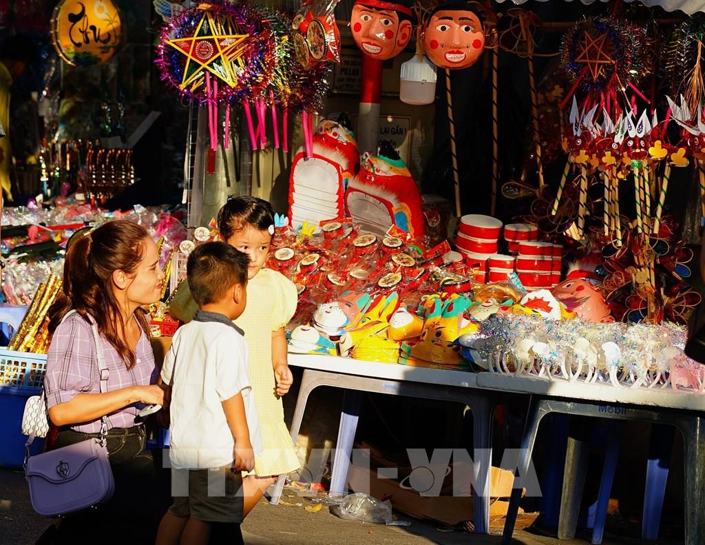 Đồ chơi Trung thu luôn thu hút sự chú ý của các em nhỏ. Ảnh: Khánh Hòa - TTXVN