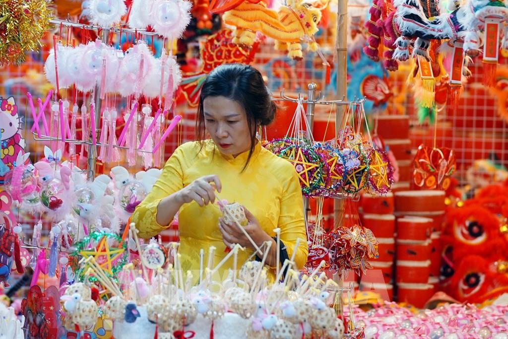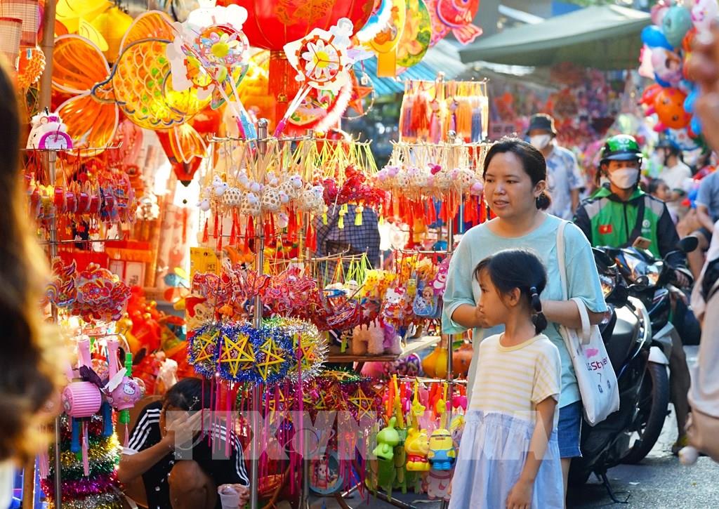 Các món đồ chơi Trung thu truyền thống Việt Nam năm nay được nhiều người chọn mua. Ảnh: Khánh Hòa - TTXVN