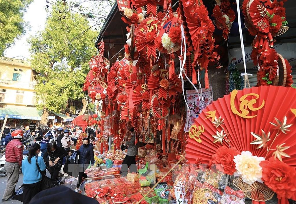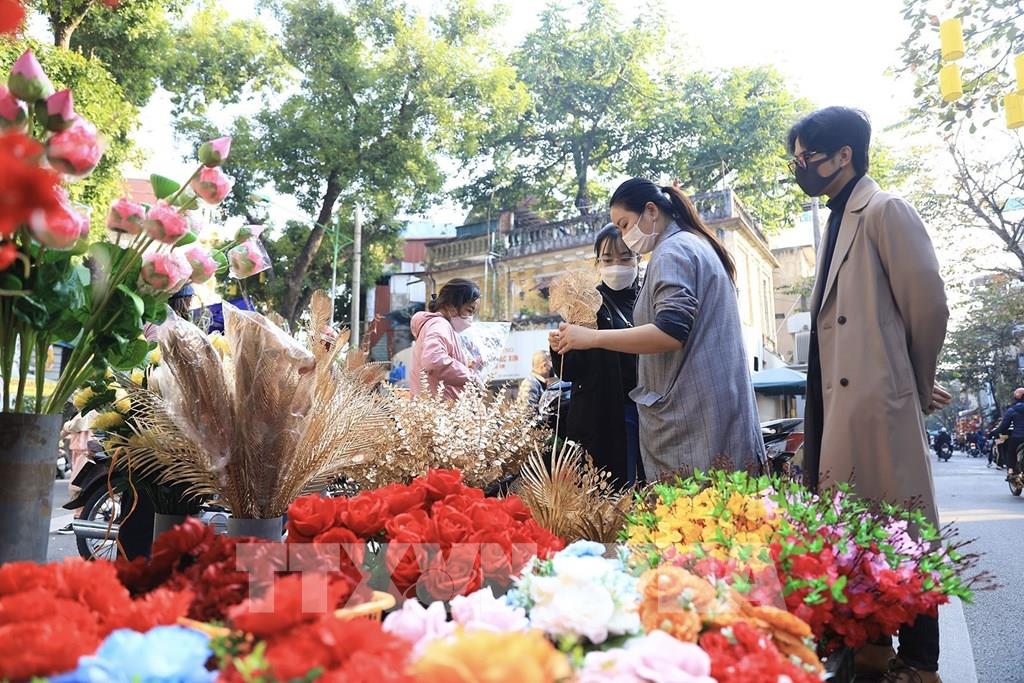 Nhiều người dân chọn mua đồ tại một cửa hàng bán đồ trang trí trên phố Hàng Lược chiều 18/1. Ảnh: Hoàng Hiếu - TTXVN