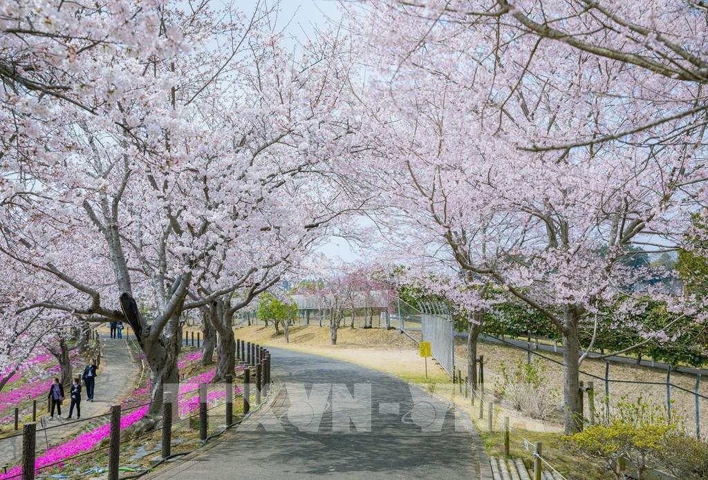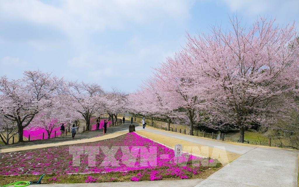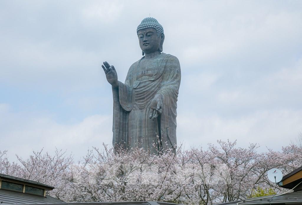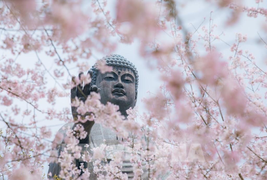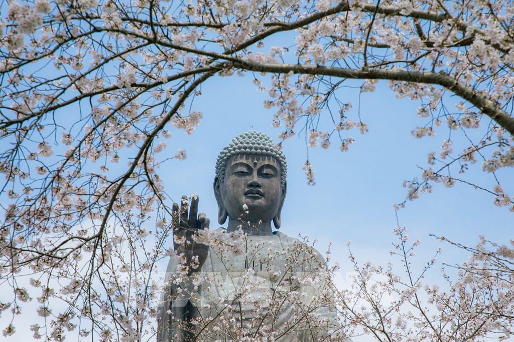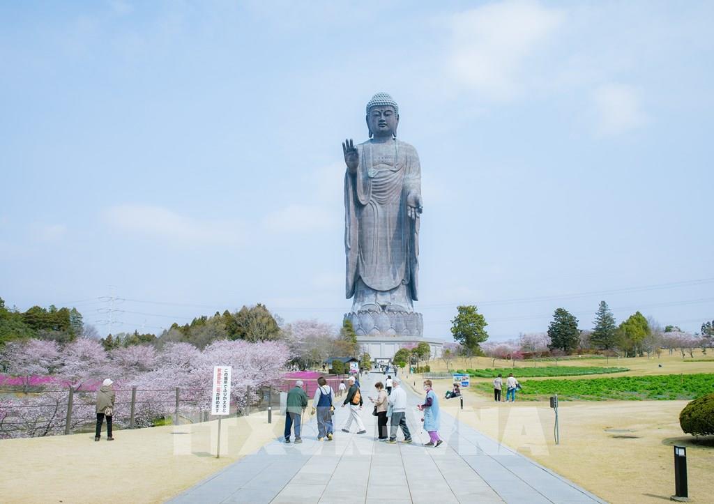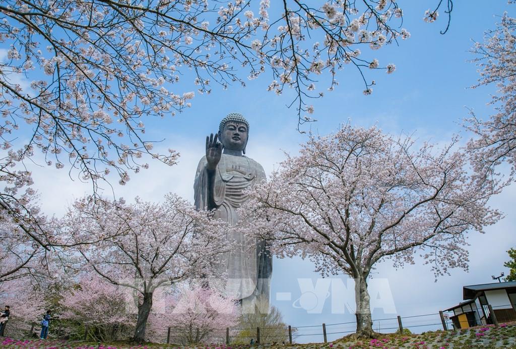Rực rỡ hoa anh đào dưới bóng Đại Phật Ushiku