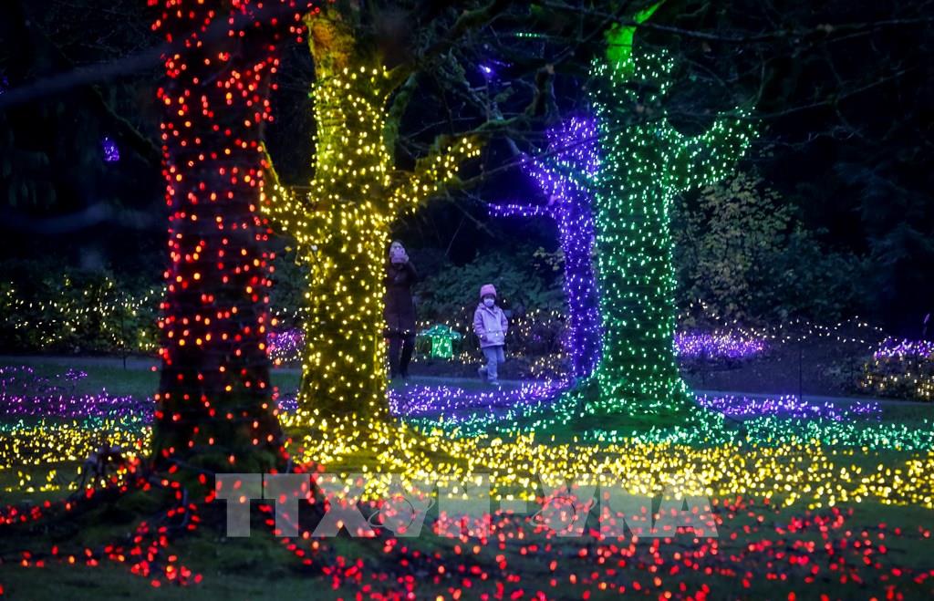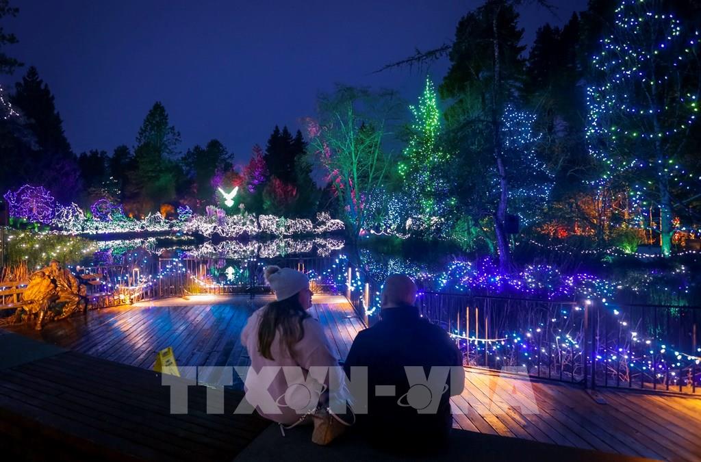 Du khách tham quan Lễ hội Ánh sáng ở Vancouver, British Columbia, Canada ngày 26/11/2021. Ảnh: THX/ TTXVN