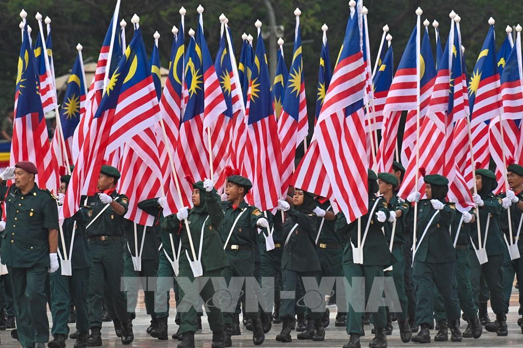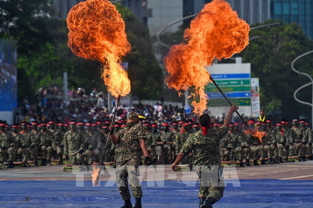 Binh sĩ biểu diễn mừng Quốc khánh Malaysia lần thứ 67 tại Putrajaya, ngày 31/8/2024. Ảnh: THX/TTXVN