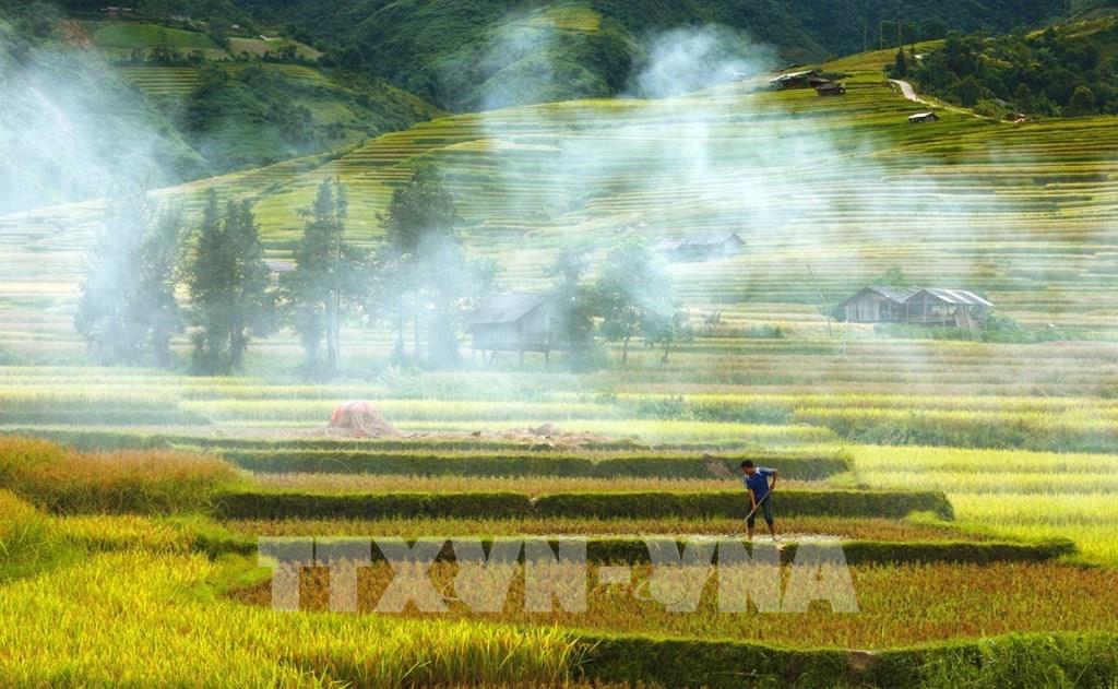 Ruộng bậc thang là công trình nghệ thuật từ kinh nghiệm và đôi bàn tay khéo léo trong lao động của đồng bào H’Mông. Ảnh: Lâm Khánh – TTXVN