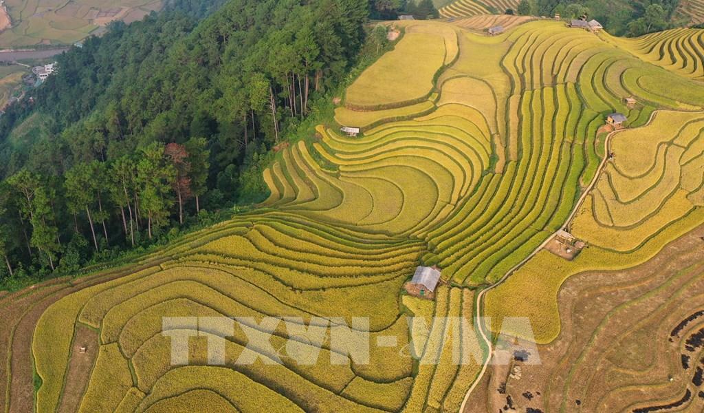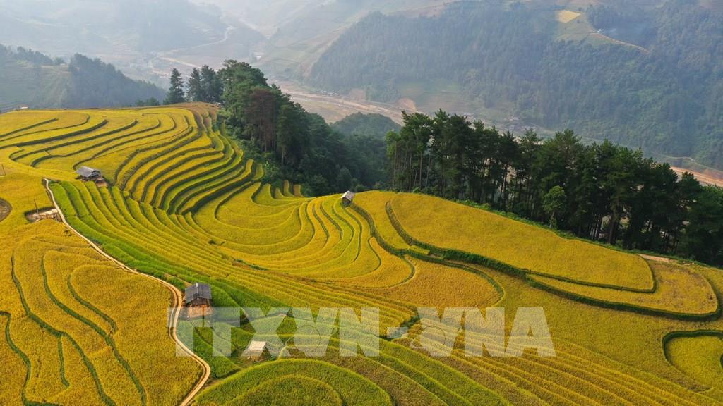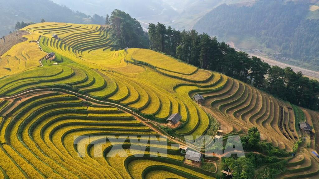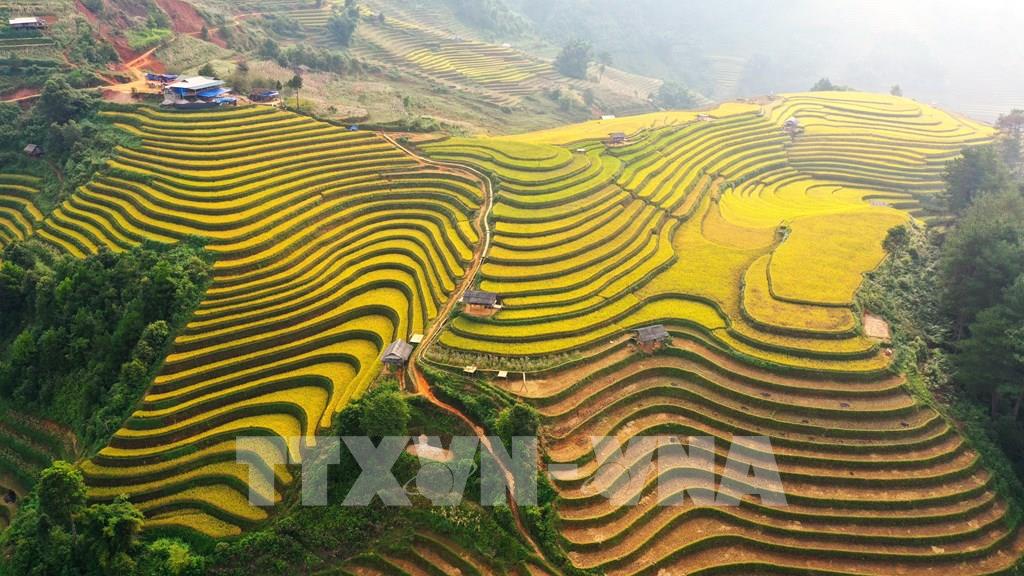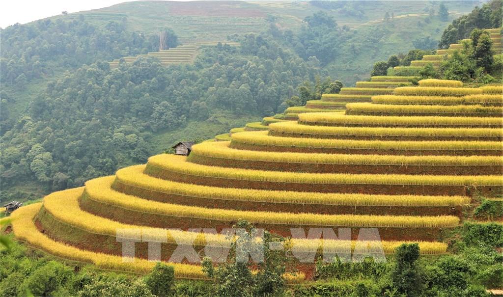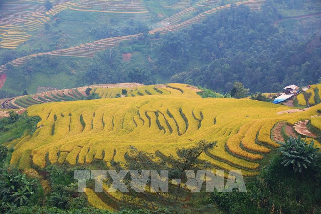 Vẻ đẹp rực rỡ của những đồng lúa chín nơi đây đã lọt vào bình chọn top 10 ruộng bậc thang đẹp nhất thế giới. Ảnh: Tuấn Anh - TTXVN
