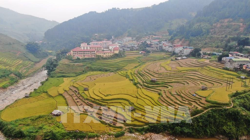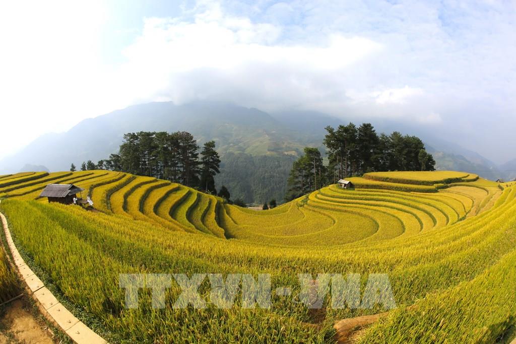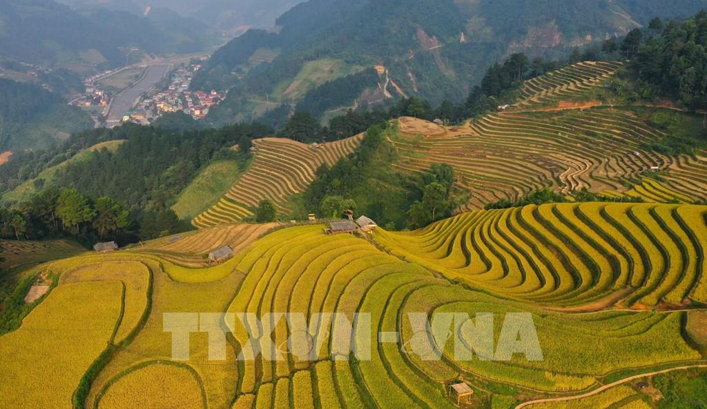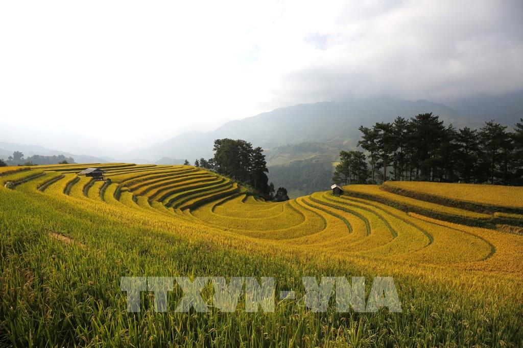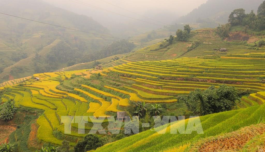 Vẻ đẹp rực rỡ của những đồng lúa chín nơi đây đã lọt vào bình chọn top 10 ruộng bậc thang đẹp nhất thế giới. Ảnh: Tuấn Anh - TTXVN