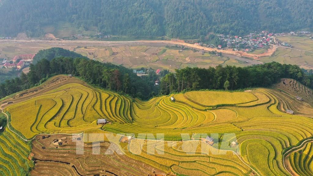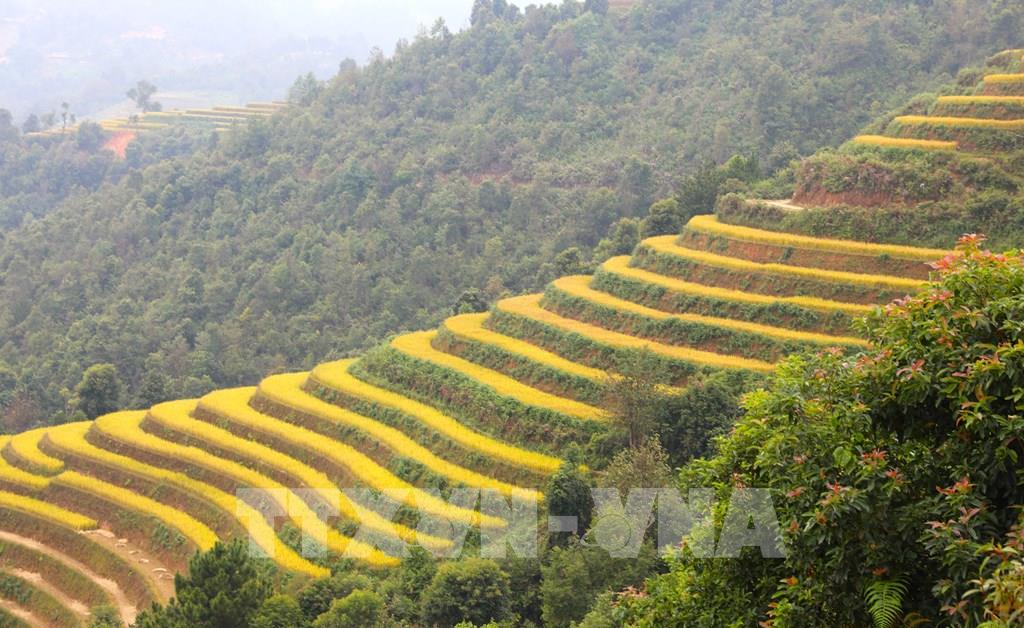 Vào mùa lúa chín, các thửa ruộng bậc thang thi nhau đổ vàng tạo nên vẻ đẹp vô cùng lộng lẫy. Ảnh: Tuấn Anh - TTXVN