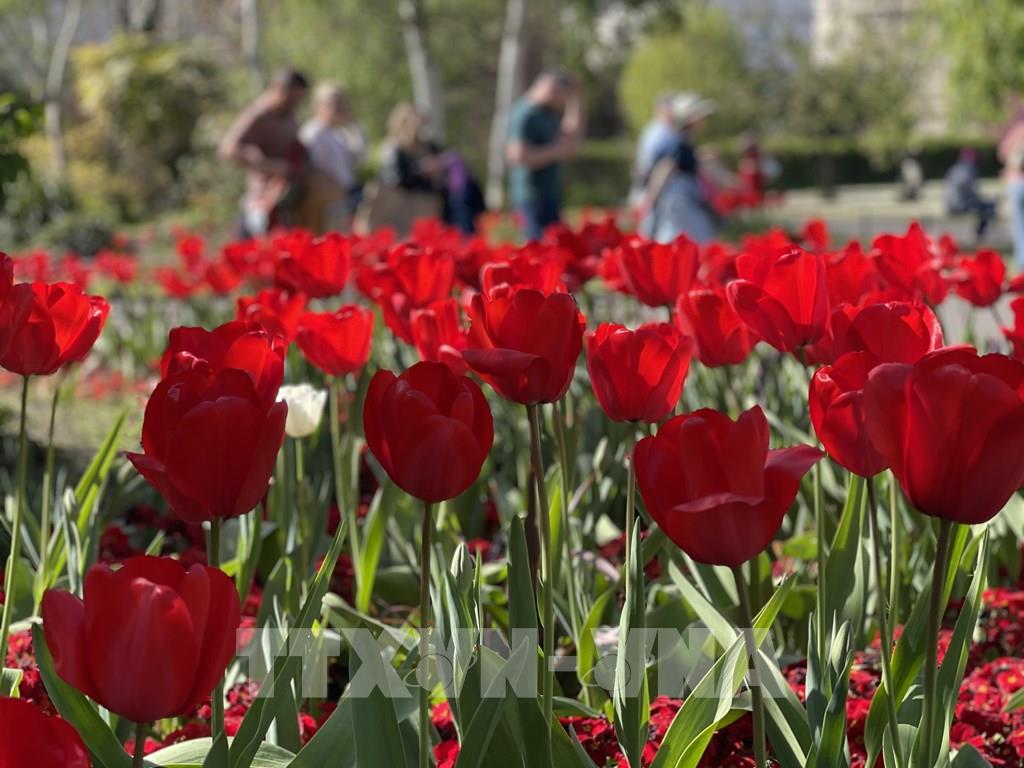 Một trong nhiều luống tuylip ở công viên Regent’s. Ảnh: Minh Hợp - PV TTXVN