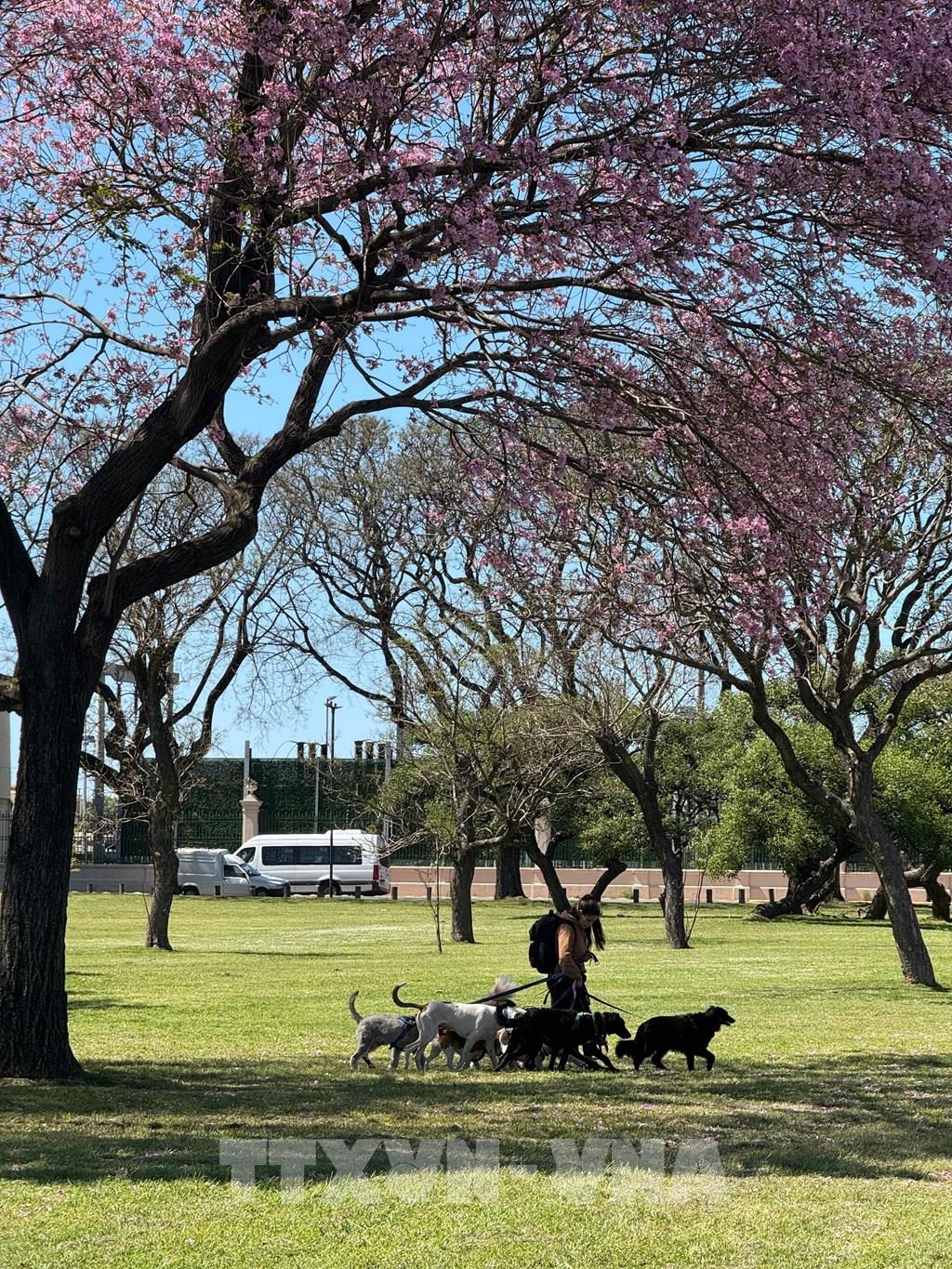09:26' - 12/11/2025Vào tháng 11, thủ đô Buenos Aires (Argentina) lại khoác lên mình màu hồng tím dịu dàng của hoa phong linh. Trên khắp các đại lộ, công viên và góc phố, những cây phong linh nở rộ, tạo nên khung cảnh vừa lãng mạn, vừa thanh bình.