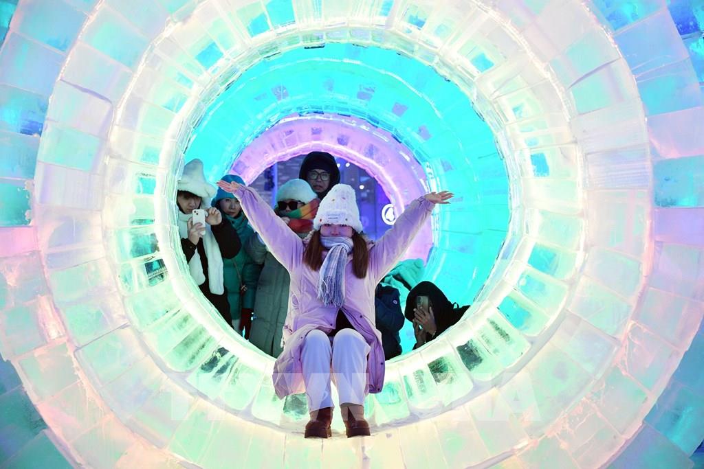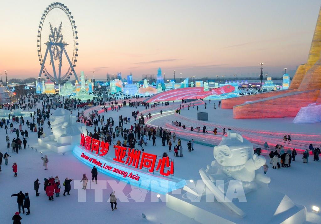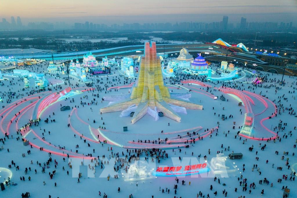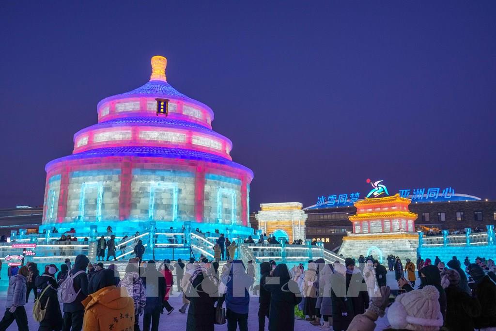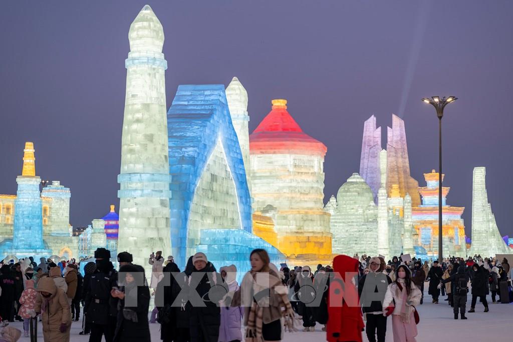 Du khách tham quan Lễ hội băng đăng quốc tế Cáp Nhĩ Tân, Trung Quốc, ngày 5/1/2025. Ảnh: THX/TTXVN