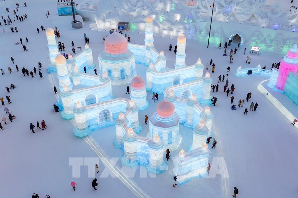 Tác phẩm băng tuyết nghệ thuật tại Lễ hội băng đăng quốc tế Cáp Nhĩ Tân, Trung Quốc, ngày 5/1/2025. Ảnh: THX/TTXVN