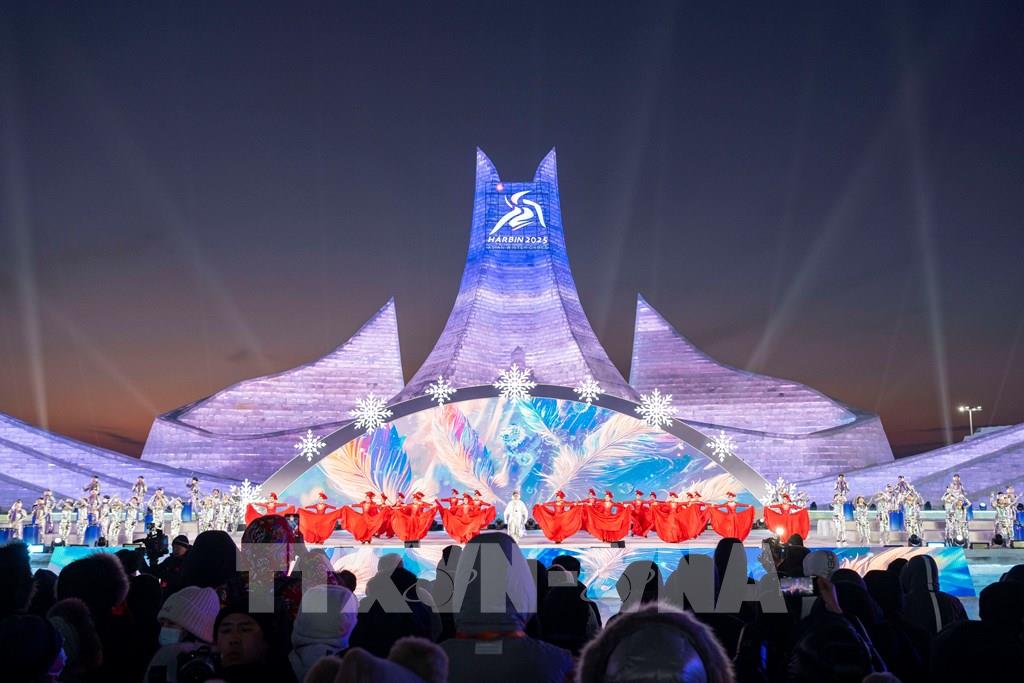 Biểu diễn nghệ thuật tại lễ khai mạc Lễ hội băng đăng quốc tế Cáp Nhĩ Tân, Trung Quốc, ngày 5/1/2025. Ảnh: THX/TTXVN