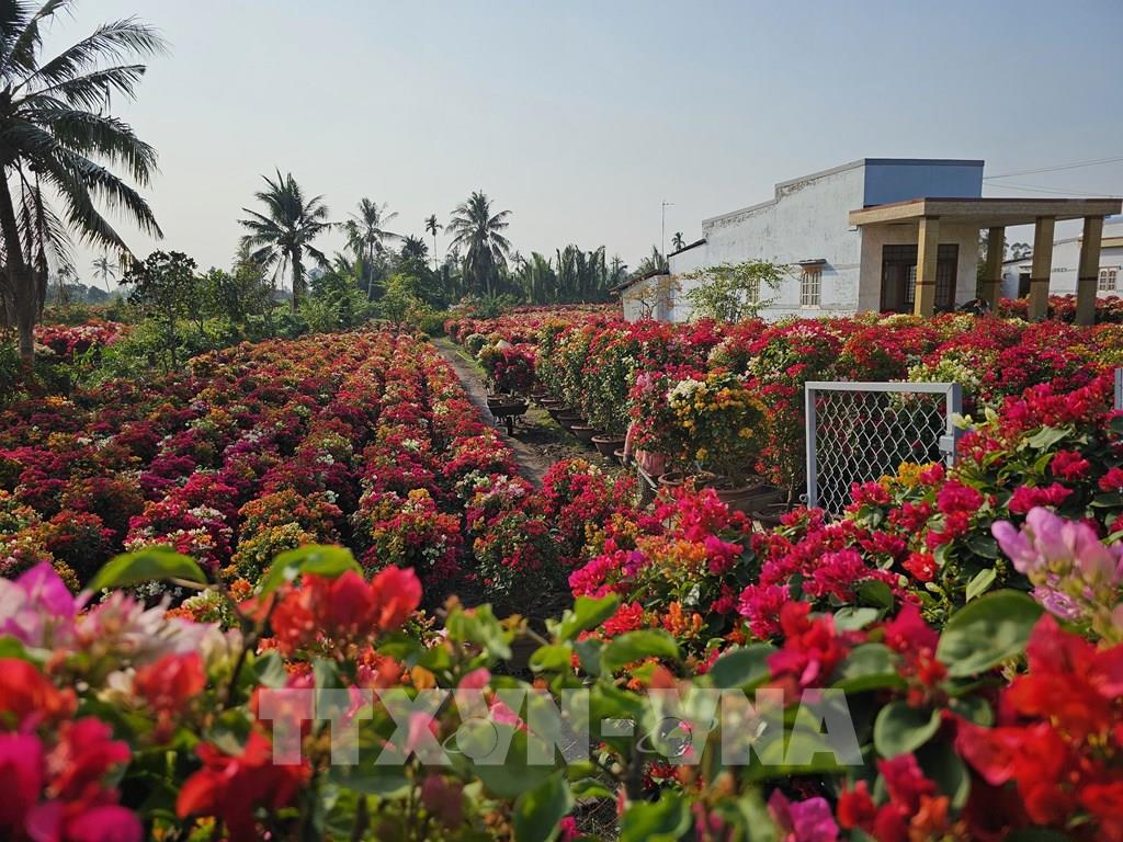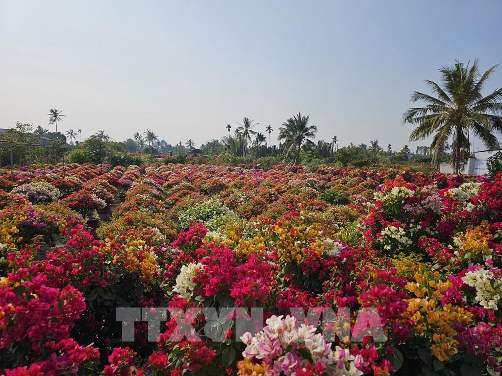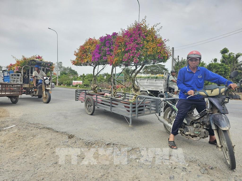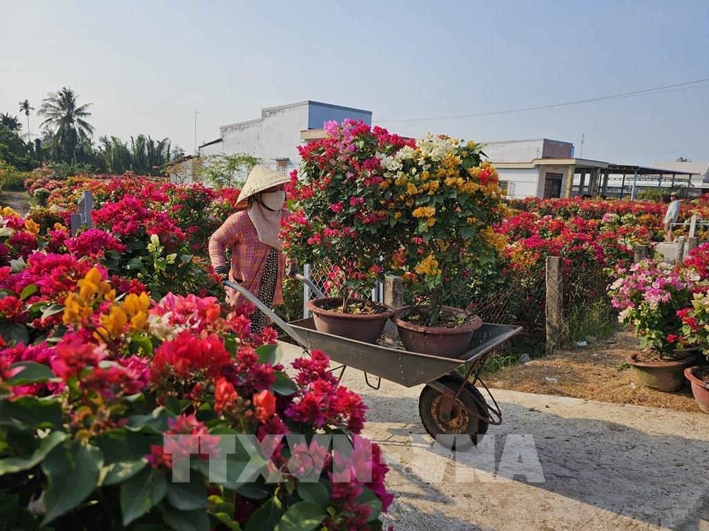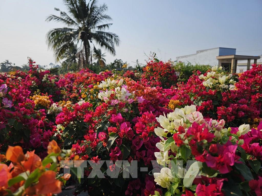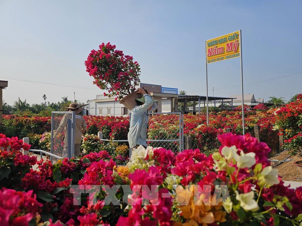 09:27' - 27/01/2025Những ngày giáp tết Nguyên đán Ất Tỵ 2025, tuyến đường đi qua làng hoa giấy Phú Sơn (huyện Chợ Lách, Bến Tre) trở nên rực rỡ sắc màu bởi hàng nghìn chậu hoa giấy bung nở trong ánh nắng mùa Xuân. Với kỹ thuật chuyển sắc, ghép nhiều màu hoa một gốc và tạo thân cây uốn lượn, sản phẩm hoa giấy của làng hoa lâu năm Phú Sơn được ưa chuộng khắp gần xa.