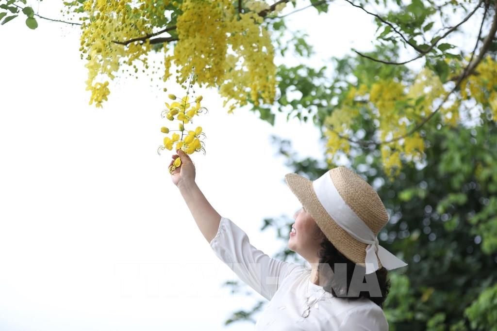 10:23' - 25/05/2021Những ngày chớm vào hạ, cung đường vòng quanh Hồ Tây của Hà Nội nhuộm bởi sắc vàng của hoa Muồng hoàng yến. Loài hoa này thuộc phân họ Vang của họ Đậu (Fabaceae), có cụm hoa lớn, nhiều hoa nhưng thưa, dạng cành hoa rủ dài xuống, mỗi hoa có đường kính 4 - 7 cm với 5 cánh hoa hình bầu dục màu vàng tươi.