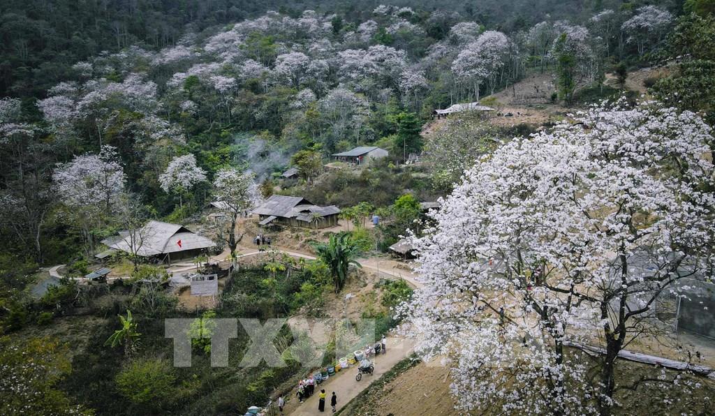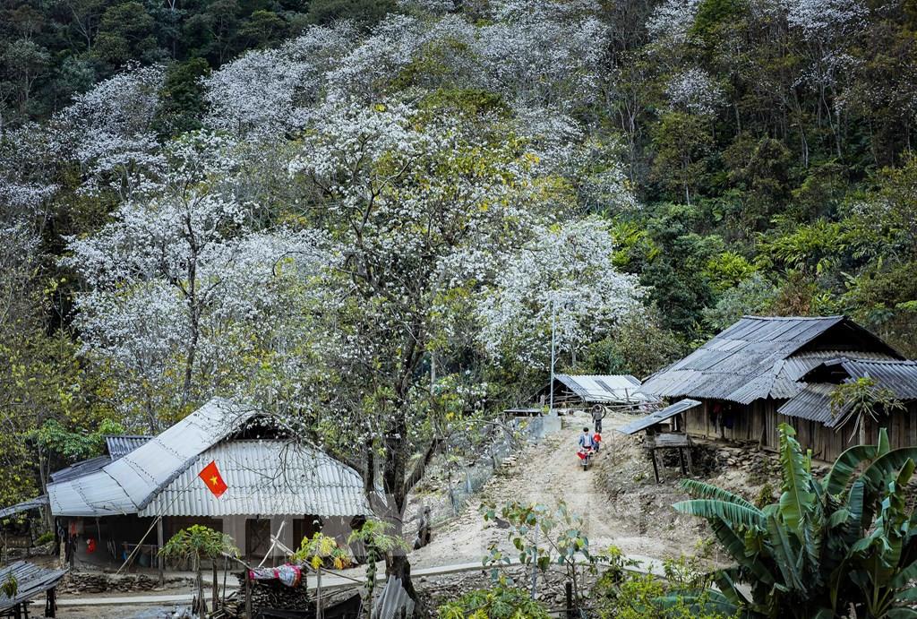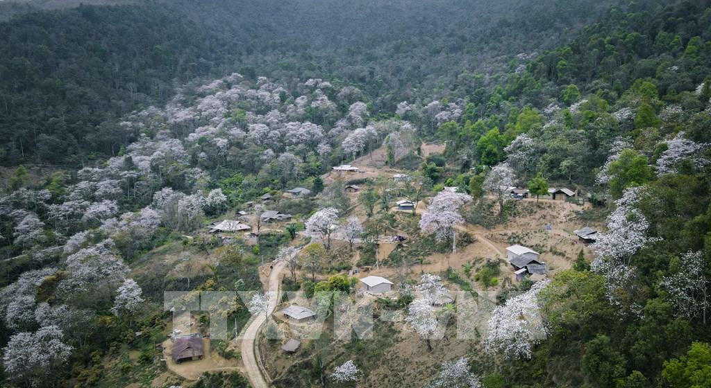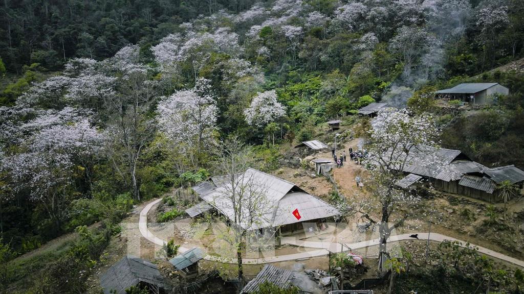 08:08' - 21/03/2025Cách trung tâm thành phố Điện Biên Phủ (tỉnh Điện Biên) chừng 50 km, bản Nặm Cứm, xã Ngối Cáy, huyện Mường Ảng có khoảng 1.200 cây hoa ban cổ thụ. Vào tháng 3 hàng năm, rừng ban cổ thụ ở Nặm Cứm bung nở trắng muốt khiến bản làng bừng sáng, đẹp như xứ sở mộng mơ. Bản Nặm Cứm hiện có hơn 70 hộ, với trên 400 nhân khẩu là đồng bào dân tộc Mông sinh sống. Người dân nơi đây luôn có ý thức bảo vệ rừng ban cổ thụ như một di sản của bản làng.