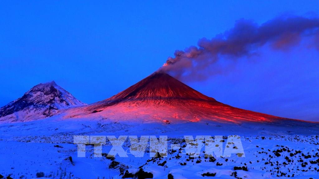 Bình minh bên ngọn núi lửa Kliuchevskoi trên bán đảo Kamchatka. Ảnh: Trần Hiếu - TTXVN