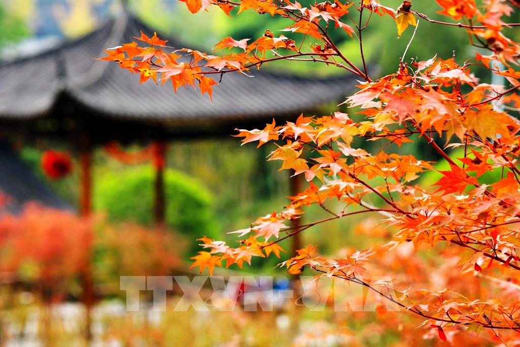 Tán lá được nhuộm màu thu tại tỉnh Hồ Bắc, Trung Quốc, ngày 15/10/2022. Ảnh: THX/ TTXVN