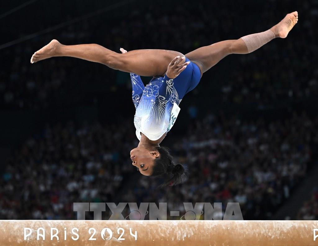 "Nữ hoàng" thể dục dụng cụ người Mỹ Simone Biles khẳng định vị thế xuất sắc nhất lịch sử khi giành 11 tấm huy chương trong kỳ Olympic 2024. THX/TTXVN