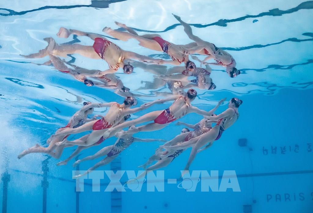 Bơi nghệ thuật có thể coi là môn thi đấu có vẻ đẹp quyến rũ nhất ở Olympic. Trong ảnh: Đội bơi nghệ thuật Trung Quốc. THX/TTXVN