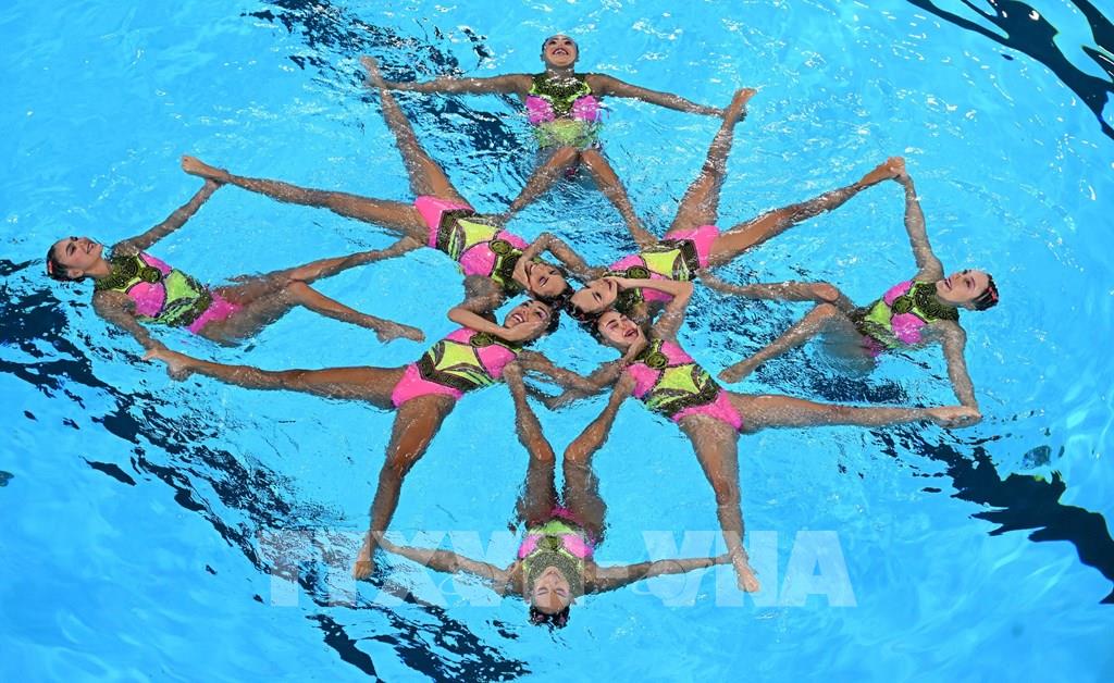 Bơi nghệ thuật có thể coi là môn thi đấu có vẻ đẹp quyến rũ nhất ở Olympic. Trong ảnh: Đội bơi nghệ thuật Mexico. THX/TTXVN