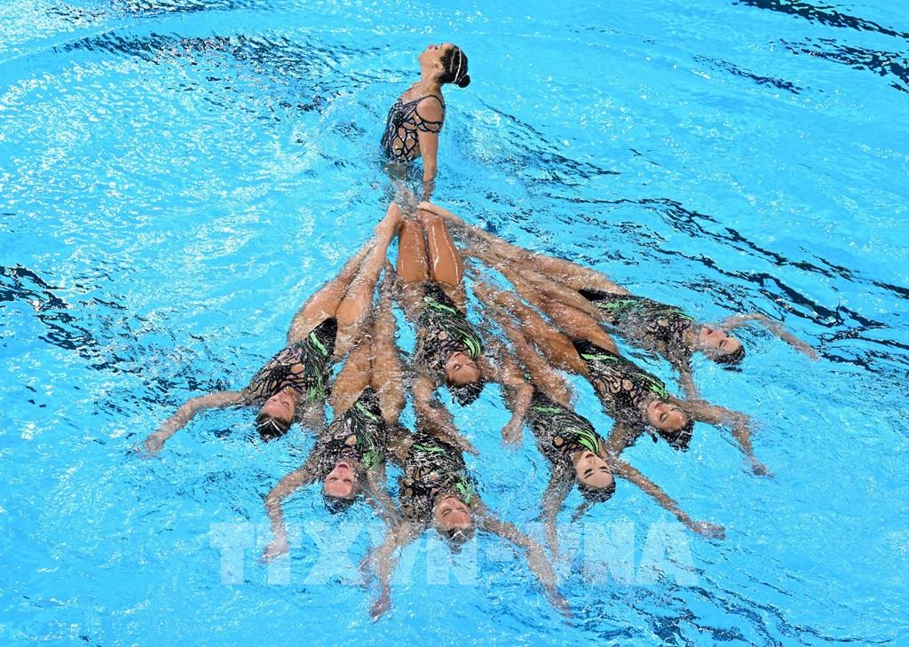 Bơi nghệ thuật có thể coi là môn thi đấu có vẻ đẹp quyến rũ nhất ở Olympic. Trong ảnh: Đội bơi nghệ thuật Mỹ. THX/TTXVN
