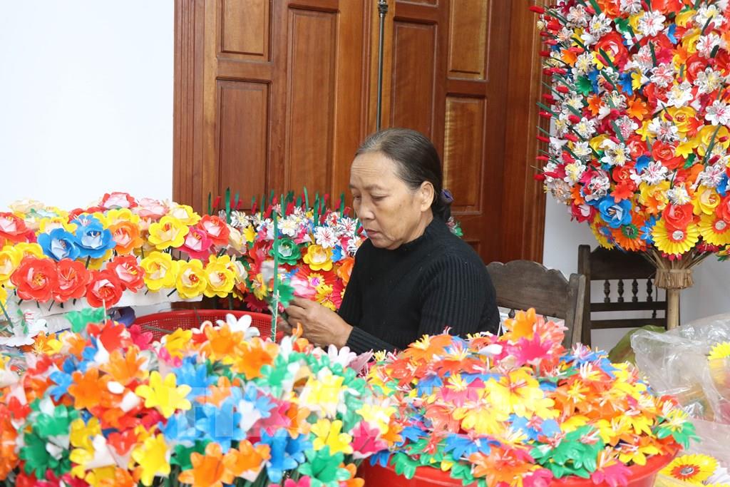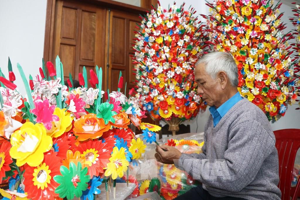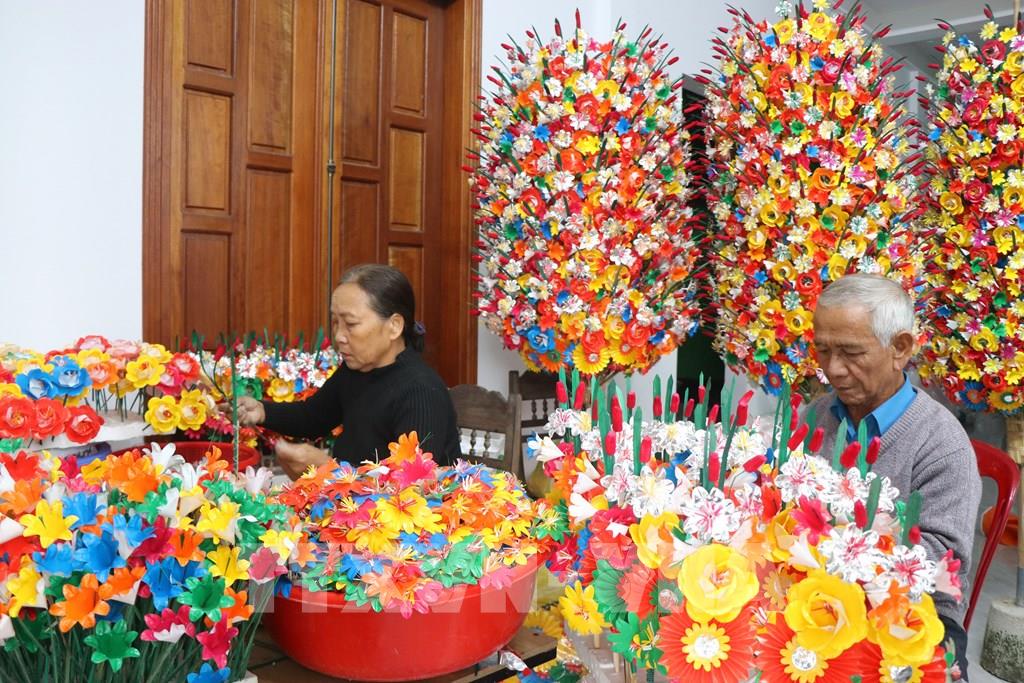 08:57' - 08/01/2025Mỗi độ Tết đến Xuân về, làng nghề hoa giấy Thanh Tiên tại xã Phú Mậu, thành phố Huế lại rộn ràng vào vụ. Những cành hoa giấy độc đáo, nhiều sắc màu không chỉ tô điểm thêm cho mùa Xuân xứ Huế mà còn gắn bó với đời sống tâm linh của người dân nơi đây. Với những nguyên liệu sẵn có ở địa phương như cây lùng, cây tre, bàn tay khéo léo của người thợ đã tạo ra nhiều sản phẩm hoa các loại như: Hoa lan, hoa huệ, hoa cúc đơn, hoa sen, tường vi, dã quỳ.