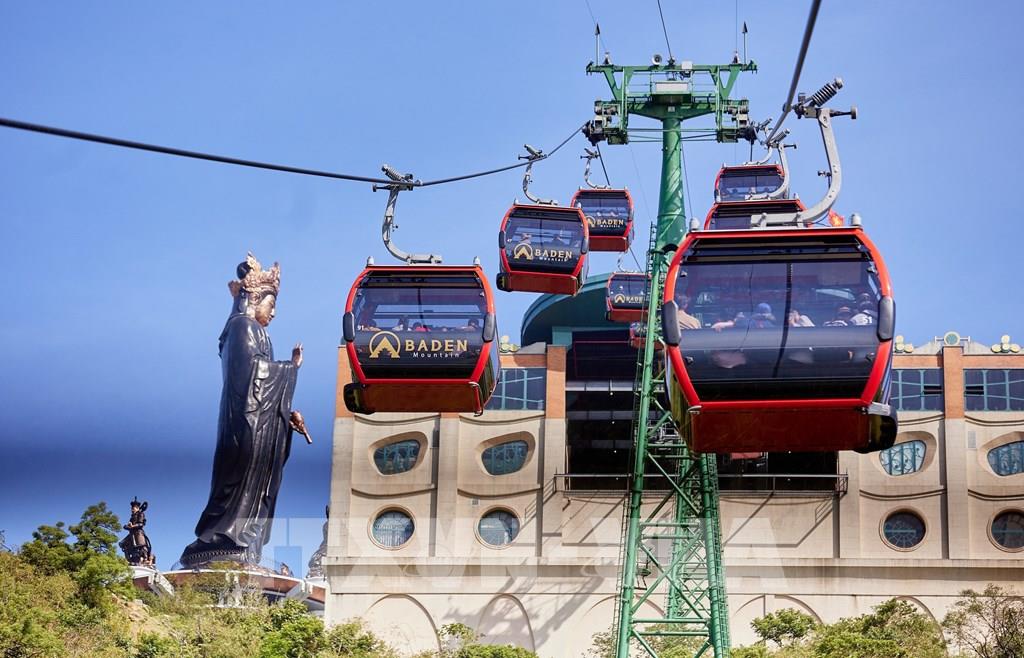 Hệ thống cáp treo lên đỉnh núi Bà Đen. Ảnh: Thanh Tân - TTXVN