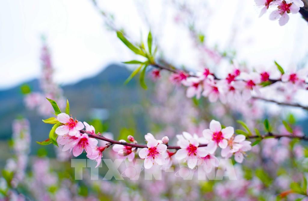 Mùa Xuân, đi đâu ta cũng có thể bắt gặp những cây đào nở rộ tô điểm thêm cho cảnh sắc nơi địa đầu Tổ quốc. Ảnh: Khánh Hoà - TTXVN