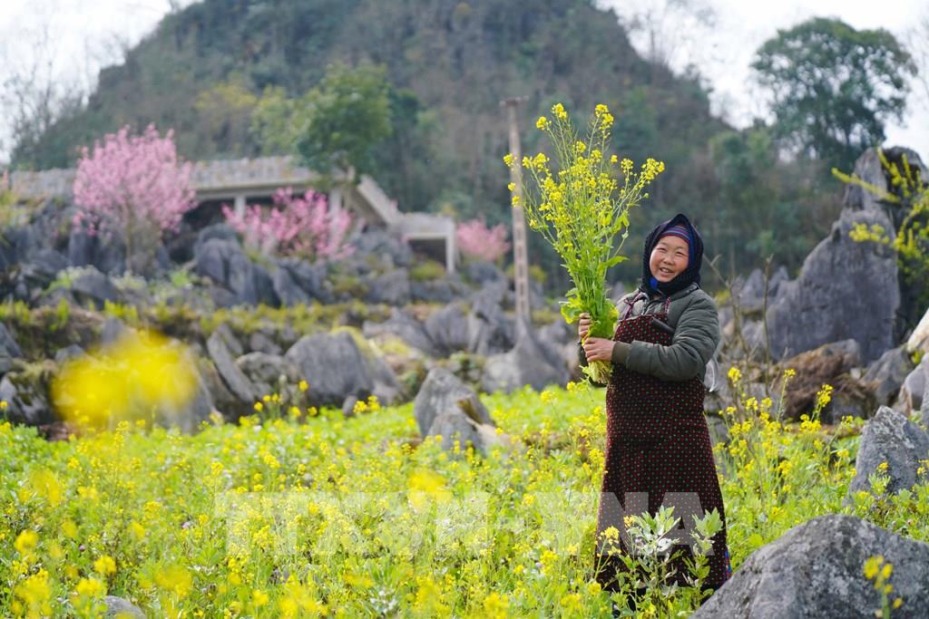 Sắc hoa Xuân góp phần làm cho cảnh vật trên cao nguyên đá Đồng Văn rực rỡ hơn. Ảnh: Khánh Hoà - TTXVN
