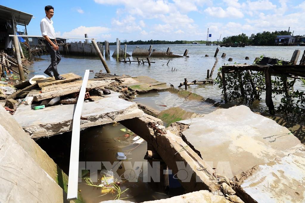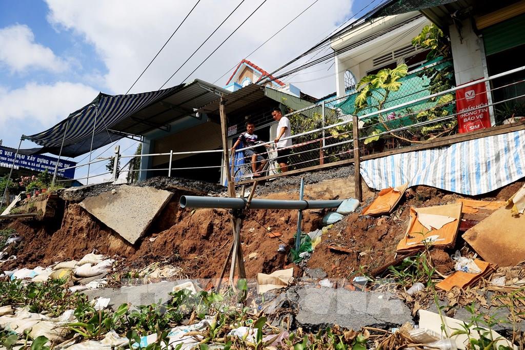 Sạt lở nham nhở, ảnh hưởng nghiêm trọng đến đời sống của người dân. Ảnh: Hồng Đạt - TTXVN