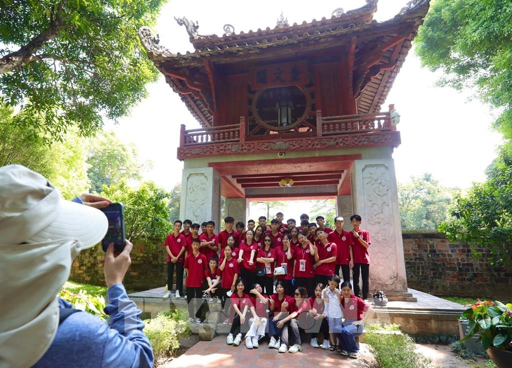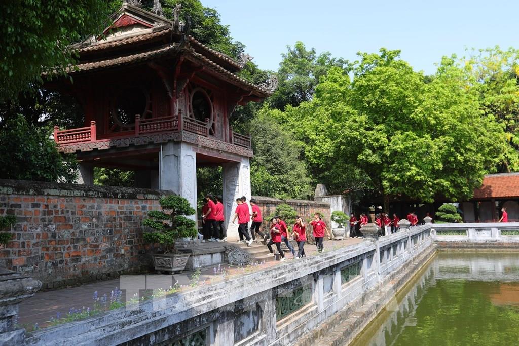 Trường THCS Cổ Loa (Đông Anh, Hà Nội) chọn Khu di tích quốc gia đặc biệt Văn Miếu – Quốc tử giám là điểm đến tham quan cho học sinh khối lớp 9 trước Kỳ thi tuyển sinh lớp 10 THPT. Ảnh: Hoàng Hiếu - TTXVN