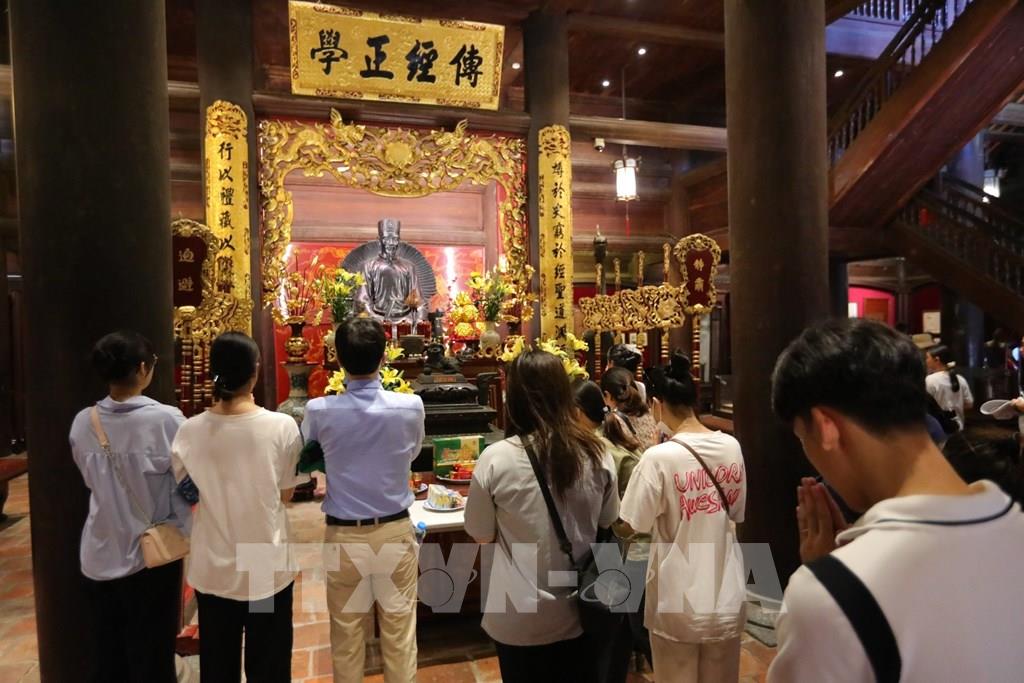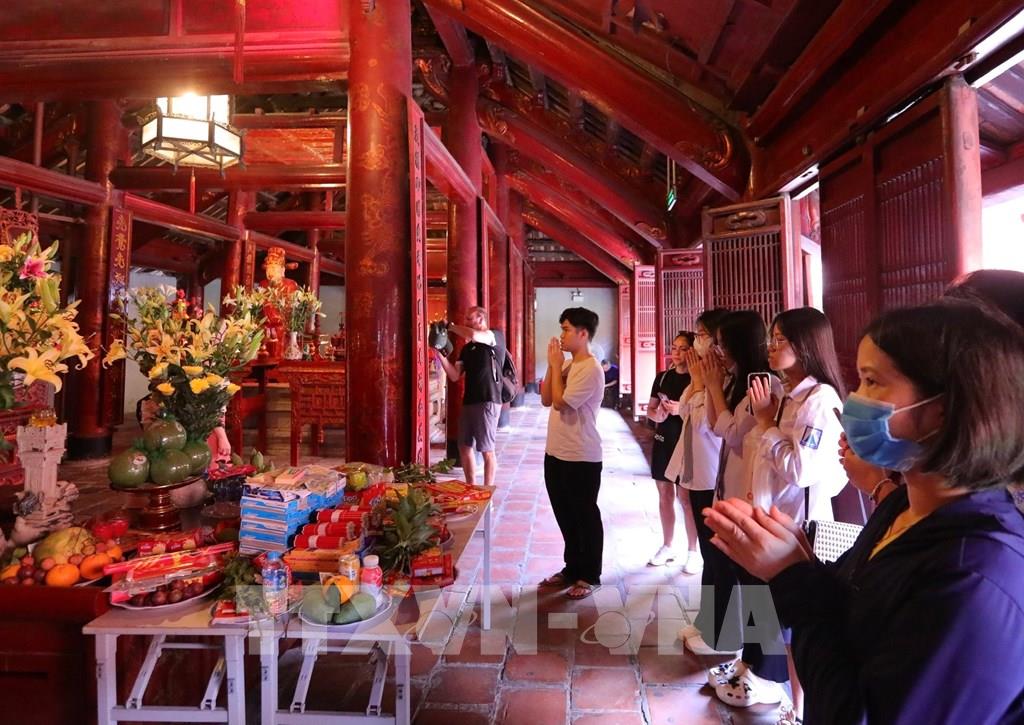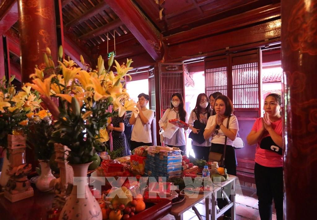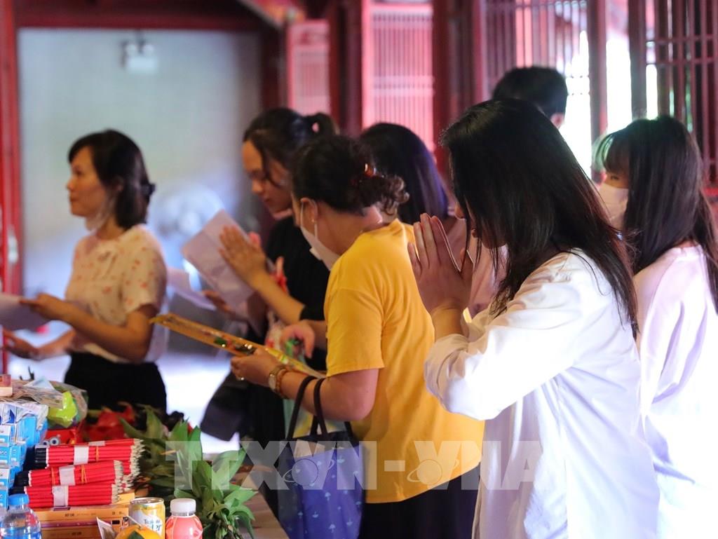 Sĩ tử đến Khu di tích quốc gia đặc biệt Văn Miếu – Quốc tử giám cầu mong đạt kết quả cao trong kỳ thi. Ảnh: Hoàng Hiếu - TTXVN