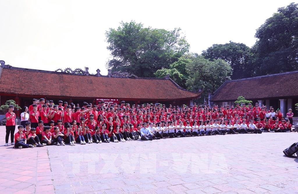 Khối lớp 9 Trường THCS Cổ Loa (Đông Anh, Hà Nội) đến Khu di tích quốc gia đặc biệt Văn Miếu – Quốc tử giám. Ảnh: Hoàng Hiếu - TTXVN
