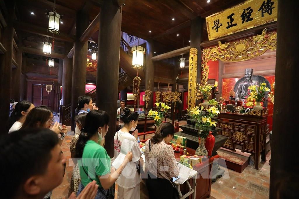 Khu di tích quốc gia đặc biệt Văn Miếu – Quốc tử giám đón rất nhiều học sinh, sĩ tử và phụ huynh tới trước Kỳ thi tuyển sinh lớp 10 THPT và kỳ thi Đại học năm 2023. Ảnh: Hoàng Hiếu - TTXVN