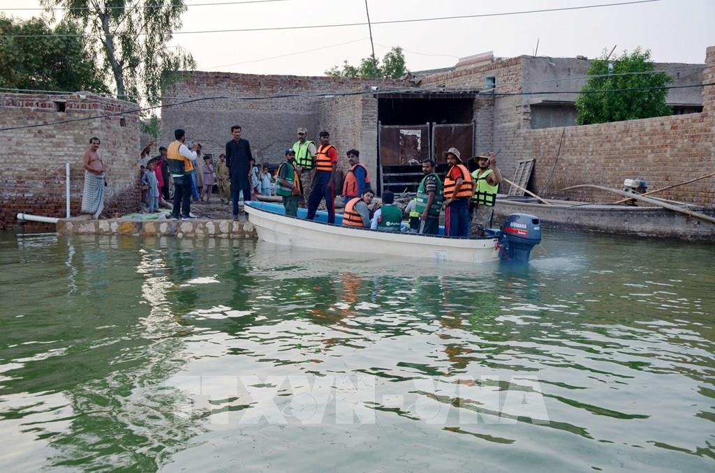 Ngày 20/9/2022, Bộ trưởng Kế hoạch Pakistan Ahsan Iqbal cảnh báo nguy cơ các bệnh lây truyền qua đường nước vượt ngoài tầm kiểm soát sau thảm họa lũ lụt ở nước này. Trong ảnh: Lực lượng cứu hộ sơ tán người dân khỏi vùng ngập lụt tại Jamshoro, tỉnh Sindh, Pakistan, ngày 15/9/2022. Ảnh: THX/ TTXVN